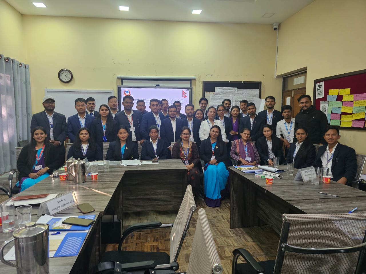 बागमती प्रदेशबाट स्थानीय तहका लागि सिफारिस हुनुभएका सहायकस्तर पाँचौ तह (अप्राविधिक), प्रशासन सेवा, सहायक पदका नव-नियुक्त कर्मचारीहरुको लागि आयोजित ६ कार्यदिनको सेवा प्रवेश तालिम कार्यक्रम (First group 2082)