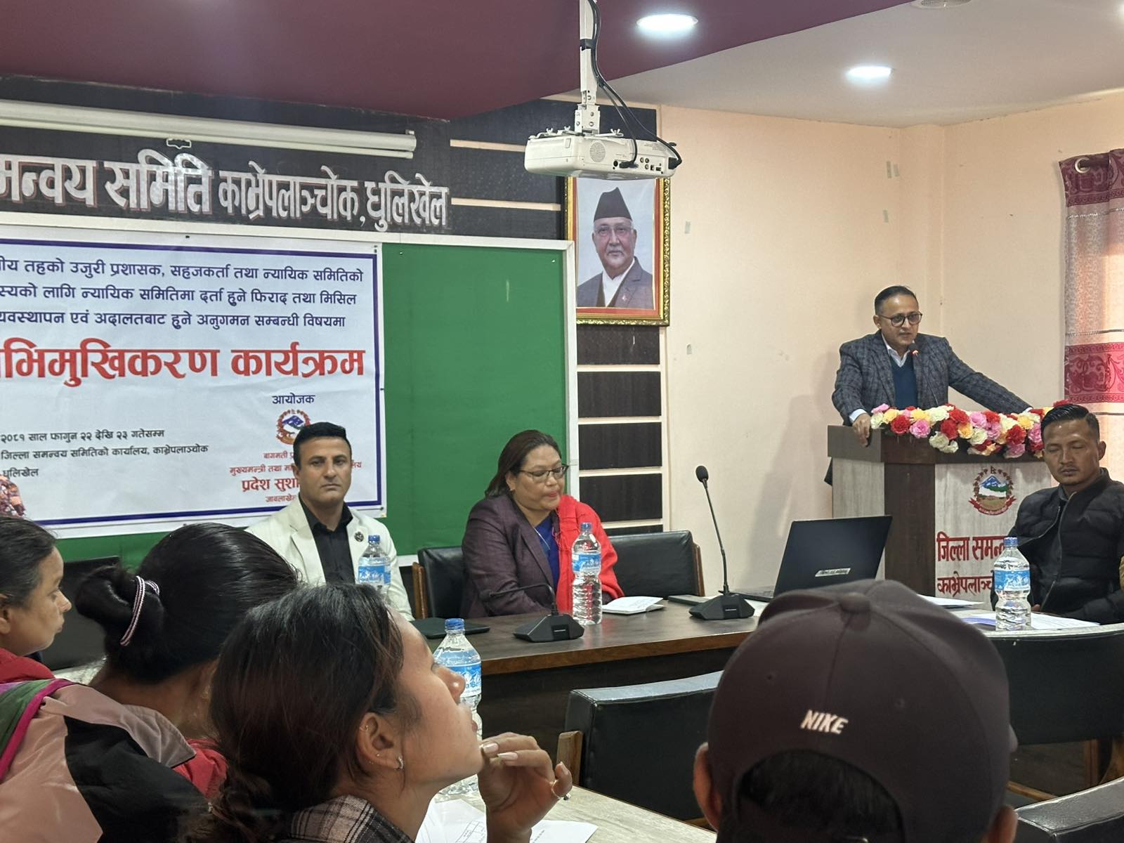 स्थानीय तहको उजुरी प्रशासक, सहजकर्ता तथा न्यायिक समितिको सदस्यको लागि न्यायिक समितिमा दर्ता हुने फिराद तथा मिसिल एवं अदालतबाट हुने अनुगमन सम्बन्धी अभिमुखीकरण कार्यक्रम, काभ्रेपलाञ्चोक